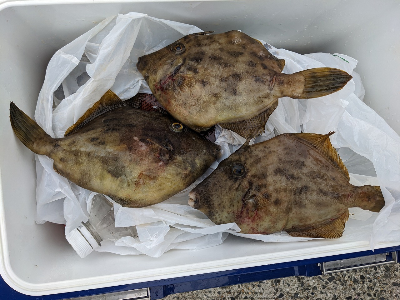 湾内波止カワハギ釣りに、一人5~6枚釣れていました!!