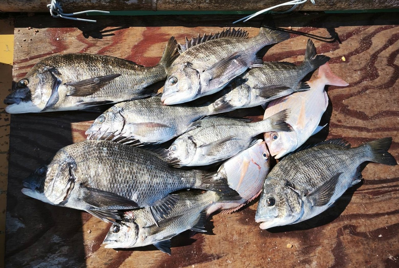 湾内筏フカセ釣りに、チヌ、マダイが釣れていました!!