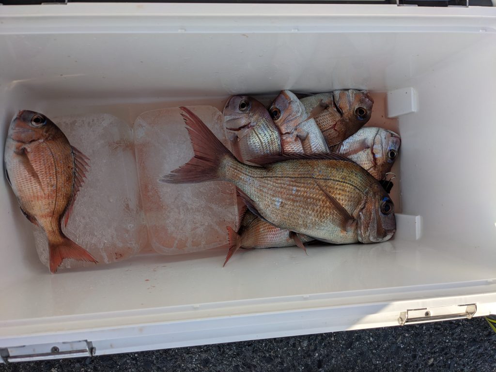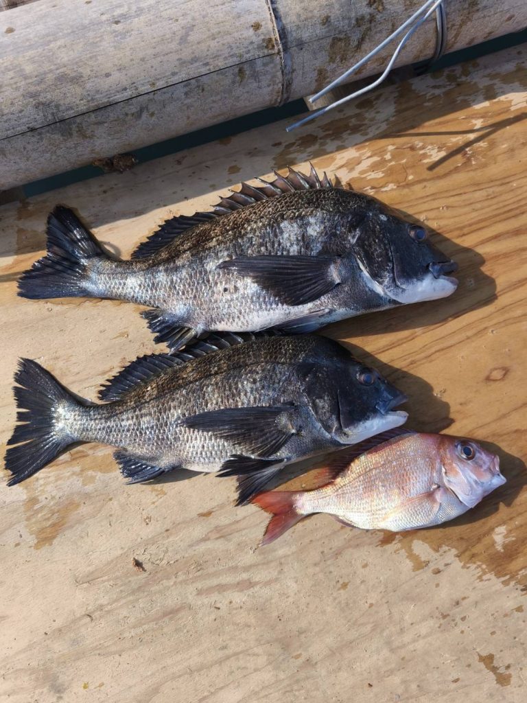 湾内筏フカセ釣りに、マダイ50㎝超!!チヌトップ48㎝頭に6枚の釣果でした!!