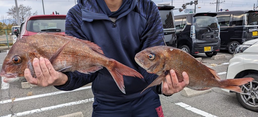 湾内波止フカセ釣りに、マダイ54cm!!チヌが釣れていました!!